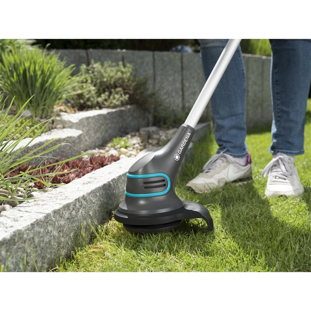 Met de GARDENA Accutrimmer SmallCut Li-23 R werkt u gemakkelijk graskanten bij en maait u het gras op moeilijk bereikbare plaatsen. De trimmer is bijzonder prettig in gebruik vanwege zijn lage gewicht en de ergonomische handgreep en extra handgreep. Het RotorCut-snijsysteem zorgt voor overtuigende maairesultaten. De reservemessen kunnen onder het handvat worden opgeborgen, waardoor ze altijd bij de hand zijn. Met geïntegreerde, gemakkelijk te onderhouden lithium-ionaccu. De accu kan op elk moment snel worden opgeladen zonder geheugeneffect. Compleet met oplader.