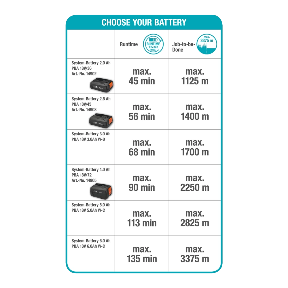 Gemakkelijk en snoerloos gazon trimmen: de accutrimmer EasyCut 23 / 18V P4A maakt het mogelijk om uw gazon in vorm te krijgen. Zelfs op plaatsen die meestal moeilijk te bereiken zijn! De EasyCut 23 / 18V P4A is erg licht van gewicht, waardoor het gebruik van het apparaat comfortabel is. Je kunt de snoerloze trimmer langdurig gebruiken zonder je moe te voelen.De Trimmer EasyCut 23 / 18V P4A is compatibel met alle accu’s van de 18V FOR ALL ALLIANCE. Afhankelijk van de gebruikte accu kan het product een maximale gebruiksduur bereiken van 135 minuten en tot 3375 m gazonrand per acculading snijden.Na een snelle en gemakkelijke montage is de EasyCut 23 / 18V P4A direct inzetbaar. Pas voordat u begint de snoerloze trimmer eenvoudig aan uw behoeften aan – zowel de handgreep is verstelbaar als de telescopische steel. Op deze manier kunt u tijdens het trimmen een rechte en ontspannen houding aanhouden.Wilt u onder obstakels door snijden? Kantel dan eenvoudig de kop van de trimmer. Tijdens het gebruik van de trimmer is de oplaadstatus altijd zichtbaar op de led-batterijstatusindicator in het handvat. Maakt u zich geen zorgen over planten die in een bloembed aan de rand van het gazon groeien. De uittrekbare en afneembare plantbeschermer houdt uw bloemen en struiken goed beschermd.De GARDENA Accutrimmer EasyCut 23 / 18V P4A solo wordt geleverd zonder accu en oplader. Hij is compatibel met alle 18V-accu’s van de POWER FOR ALL ALLIANCE, een van de grootste accu-allianties van meerdere merken van toonaangevende fabrikanten. Deze accu’s kunnen worden gebruikt voor tal van apparaten in huis en tuin. U bespaart dus geld en blijft flexibel! Passie aangedreven door GARDENA – Tuingereedschap op accu dat u de vrijheid geeft om te creëren.