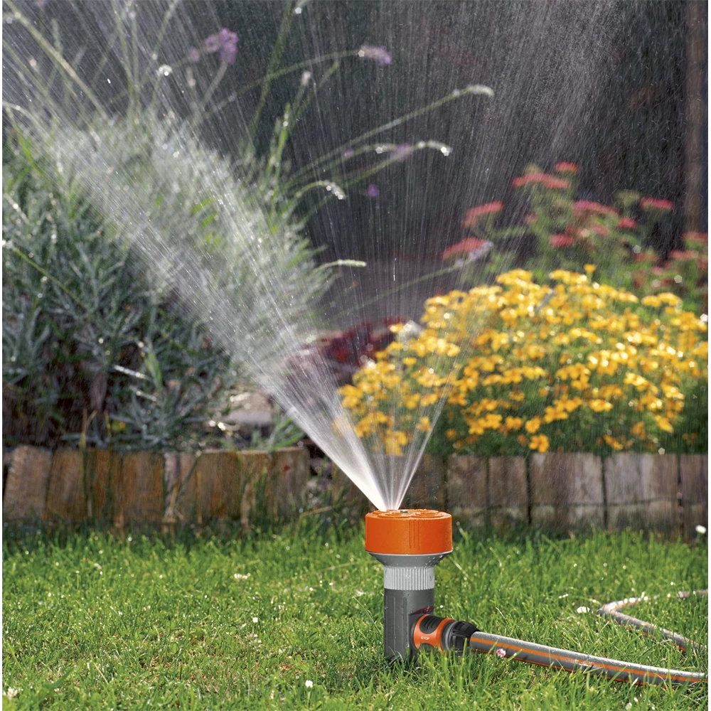 De GARDENA Multi 4-sproeier Twist bestaat uit een sproeier voor het besproeien van vier verschillende zones: cirkel, halve cirkel, vierkant en rechthoek. De besproeiingszones kunnen worden geselecteerd met de draaiknop op de sproeier. Het bijpassende GARDENA Slangstuk (art. nr. 915) wordt meegeleverd in dit complete pakket. De besproeiingszones hebben de volgende afmetingen: Volledige cirkel: ø max. 10 m / 80 m2; Halve cirkel: r = max. 8 m / 100 m2; Vierkant: max. 8 x 8 m / 64 m2; Rechthoek: max. 16 x 2 m / 32 m² De Multi 4-sproeier wordt stevig op een spike bevestigd. Hiermee kunt u de GARDENA Multi 4-sproeier Twist gemakkelijk en stevig in het gazon of de grond plaatsen. Ook kunt u de sproeier zonder problemen verwijderen en ergens anders plaatsen. Met de GARDENA Classic Multi 4-sproeier Twist kunt u uw tuin optimaal besproeien op basis van de vereisten.