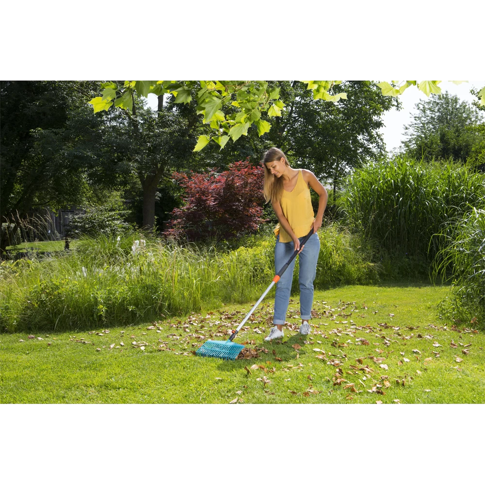 Gazonbezitters zullen de Gardena CS Gazonhark set goed kunnen gebruiken voor het bijeenharken van blad, grasresten, verticuteermateriaal en tuinafval. De stevige tanden van kunststof zijn praktisch opgesteld en ontzien het onderliggende gazon.