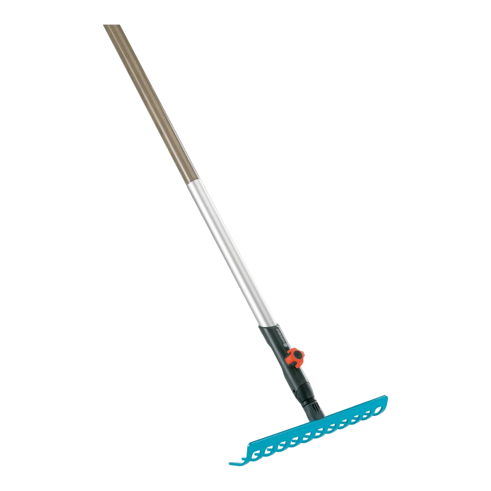 De GARDENA Combisystem hark is veelzijdig toepasbaar voor harken, egaliseren en bodembewerking. De hark heeft een werkbreedte van 30 cm (met 12 tanden).