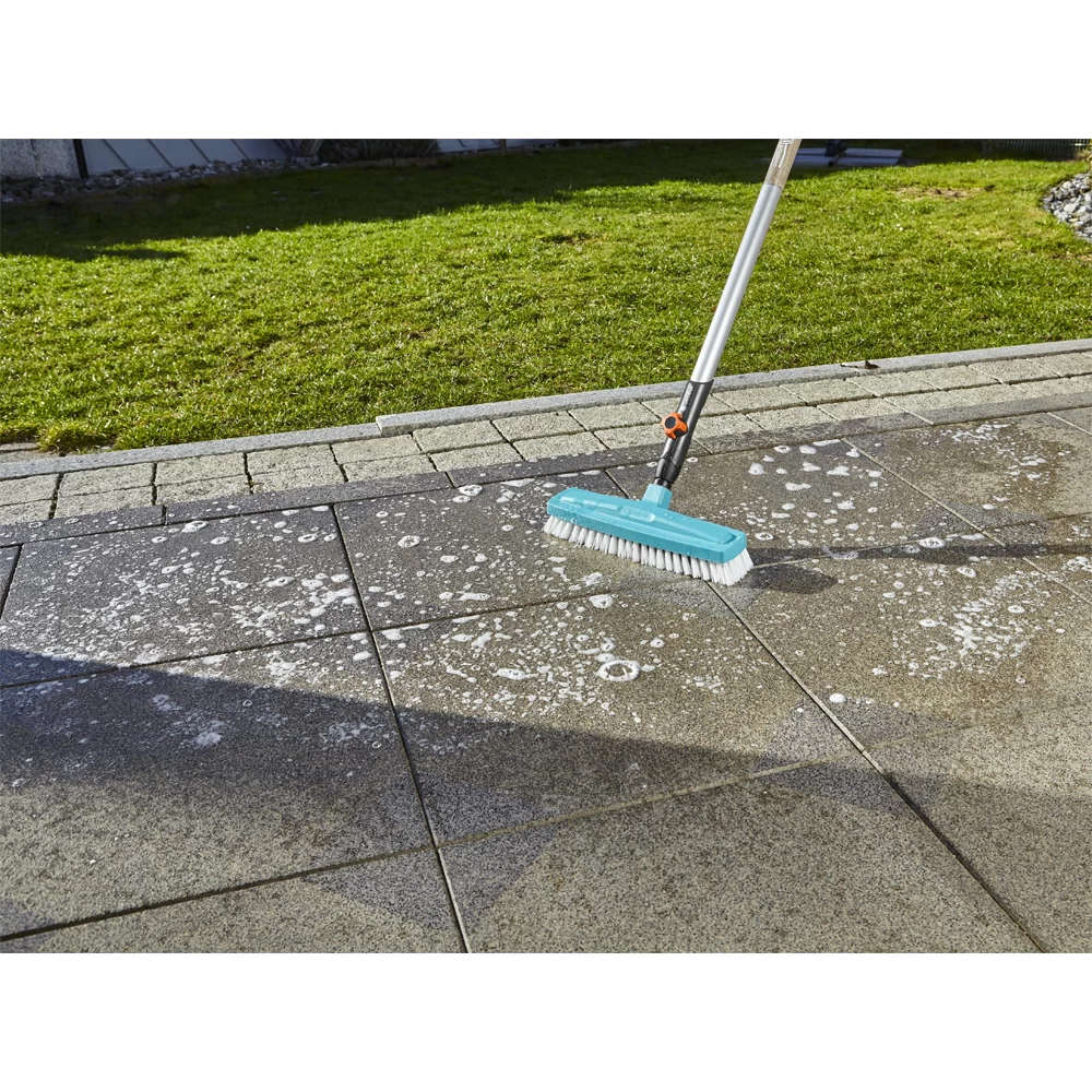 De GARDENA combisystem-schrobber is ideaal voor gebruik in huis. Dankzij de uiterst elastische polypropyleen borstels en een werkbreedte van 30 cm, plus een houder van slagvast kunststof, is de schrobber zelfs geschikt voor ingelopen vuil of vochtig materiaal. Praktisch: de randen zijn afgerond om het meubilair te ontzien. De schrobber is geschikt voor alle stelen van het GARDENA combisystem, waarbij GARDENA een steellengte van 130 of 150 cm adviseert, afhankelijk van uw lichaamslengte. De garantieperiode is 25 jaar.