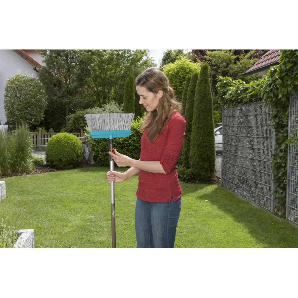 De GARDENA combisystem Terrasbezem, met een werkbreedte van 32 cm, is ideaal voor het vegen van terrassen en balkons. De slagvaste behuizing van hoogwaardig kunststof heeft stevige borstels voor een optimaal schoonmaakresultaat. De combisystem Terrasbezem past op alle combisystem stelen, waarbij GARDENA de 130 cm lange steel aanbeveelt, afhankelijk van de lengte van de gebruiker.