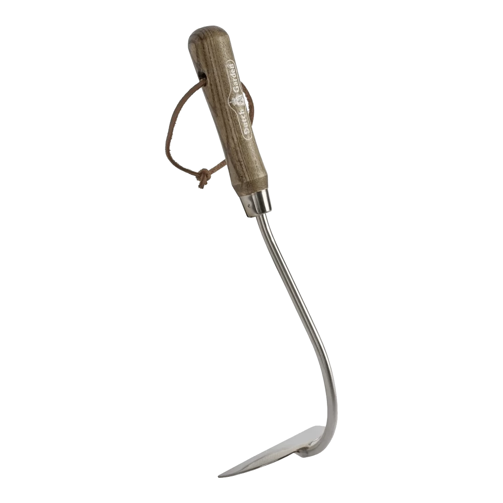 Het hoogwaardige FSC-hout ligt prettig in de hand. Wel zo handig, want soms is er kracht nodig om ongewenste planten weg te hakken of te snijden. Het sterke roestvrijstalen mes is scherp, zodat jij makkelijk hakt, schraapt en snijdt. Na het werken in de tuin, berg je het handhakje eenvoudig op door het leren koordje als hanger te gebruiken.