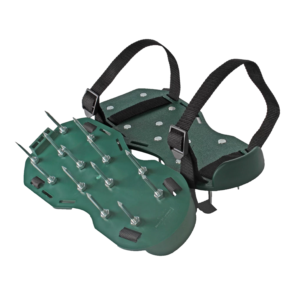 Deze gazonpriksandalen kunt u onder u schoenen binden, zo prikt u gaatjes in het gazon terwijl u loopt. Hierdoor worden nuttige micro-organismen geactiveerd in de bodem, wat beter is voor het gazon.