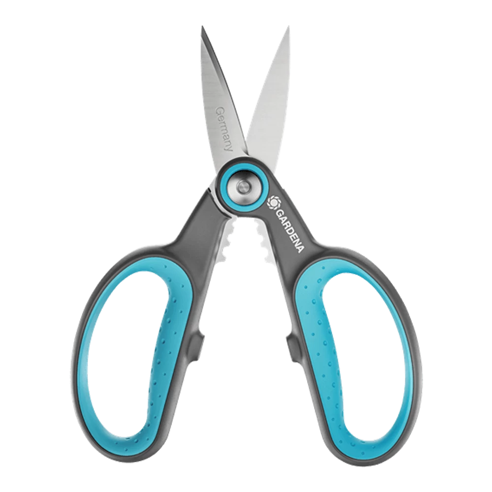 Met de HerbCut van GARDENA kan je op betrouwbare wijze houtachtige kruiden zoals rozemarijn, tijm of salie knippen. In de praktische set met holster heb je de HerbCut onmiddellijk bij de hand. Met de puntige messen, gemaakt van duurzaam en roestvrij staal, kan je langdurig precies knippen. Tussen de twee handgrepen zitten gaatjes met drie verschillende groottes. Deze hebben een praktische ontbladerende functie. Als je bijvoorbeeld een rozemarijntakje erdoorheen trekt, verwijder je alle bladeren met een enkele beweging. Je kan vervolgens de kruiden gebruiken om er direct mee te koken, of ze eerst laten drogen. De kruidenschaar is geschikt voor zowel rechts- als linkshandigen en past altijd comfortabel in je hand, dankzij de ergonomische ErgoTec-handgreep. De antislip handgreep met zachte grip zorgt voor een stevige grip op elk moment. De HerbCut is indrukwekkend duurzaam, aangezien zijn handgrepen en holster zijn gemaakt van meer dan 70% gerecyclede kunststof. Om de schaar op zijn plek te houden, hoef je hem alleen maar in de holster te plaatsen, die je bevestigt aan de kruidenpot. De messen zijn is geschikt voor contact met voedsel, want deze voedselveilige schaar laat geen geur of smaak achter. Hij is ook gemakkelijk schoon te maken en is vaatwasmachinebestendig. De HerbCut is een kwaliteitsproduct dat is ontwikkeld in Duitsland en GARDENA geeft er 25 jaar fabrieksgarantie op na registratie op gardena.com/registration binnen 3 maanden na aankoop. Ga voorzichtig om met het product. GARDENA Micro-Cutting. Geef je oogst de respect die het verdient, met ons assortiment precisiegereedschappen.