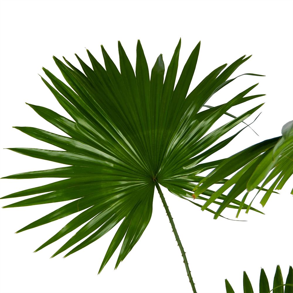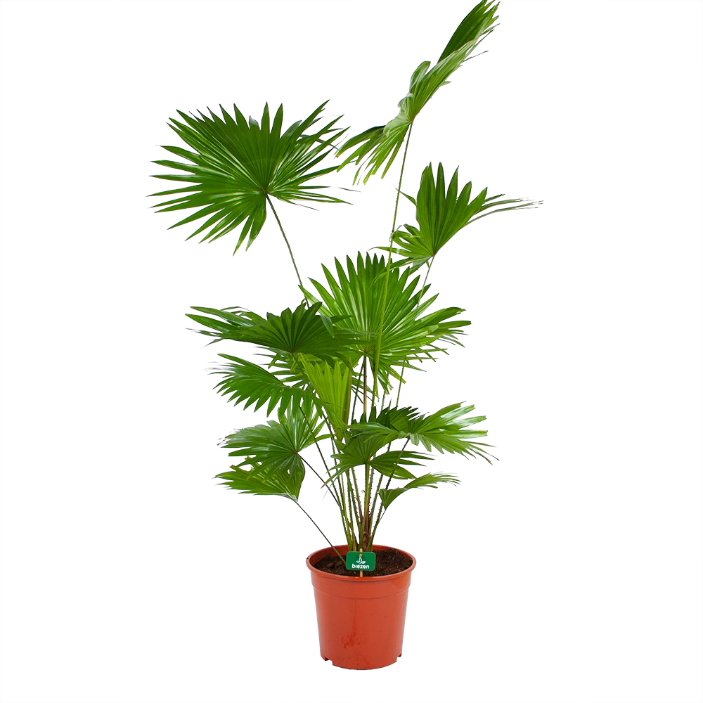 De waaierpalm heeft de bladvingers aan elkaar vergroeid waardoor ze hun grote waaiervormige bladeren hebben gekregen. De Livistonia rotundifolia heeft een luchtzuiverende werking.