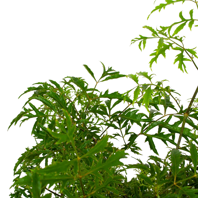 De Polyscias Hawaiiana Ming heeft een struikachtig uiterlijk en is een kamerboom. Hij heeft een dikke stam en smalle, kartelige donkergroene bladeren. De verzorging van deze binnenplant vereist de nodige aandacht. Plaats de Polyscias of Aralia in de halfschaduw of op een iets lichtere plek en houd hem uit direct zonlicht. Verplaats de plant bij voorkeur niet, want daar houdt hij niet van. Geef de Polyscias regelmatig wat water en houd de grond tussen de waterbeurten door licht vochtig.
