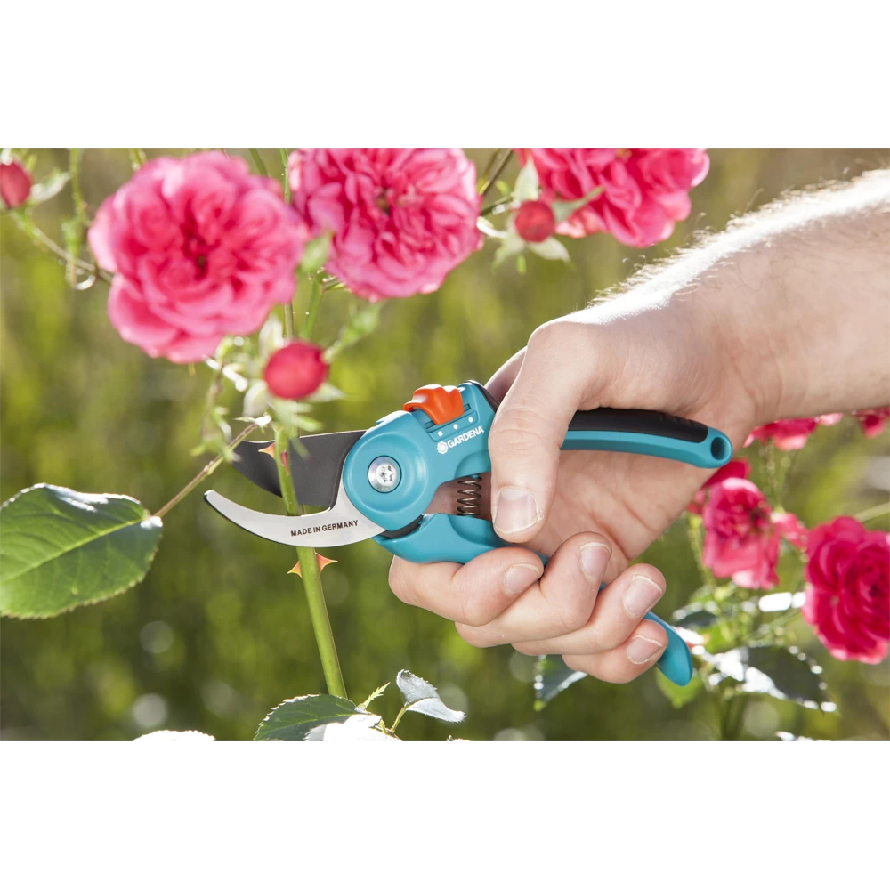 De GARDENA Classic snoeischaren, met antikleefcoating op het bovenmes en een ondermes van roestvrij staal, zijn ideaal om bloemen en jonge scheuten te snoeien. De ergonomische handgrepen met softgrip op bovenste handgreep bieden maximaal comfort tijdens het snoeien. Met praktische éénhandsvergrendeling om veilig op te bergen.