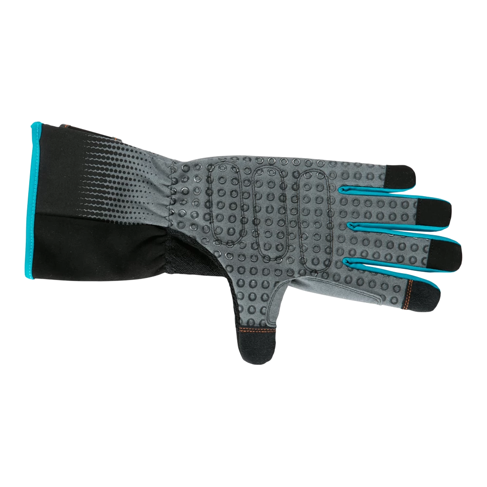 De struikhandschoen in maat M van GARDENA is uw perfecte metgezel bij het snoeien van struiken en het omgaan met dichte ondergroei in de tuin. Deze duurzame tuinhandschoen voor middelgrote handen is gemaakt van een robuust materiaal dat u beschermt tegen schrammen en brandnetels. De lange boord beschermt uw pols en onderarm. Bij het gebruik van tuinsnoeischaren voelt u de hoge kwaliteit van de handschoenen. Bovendien is de stof tussen duim en wijsvinger versterkt, omdat dit gebied vaak erg slijt, wat betekent dat de handschoen lang meegaat. De struikhandschoen is erg comfortabel: de handpalm van de handschoen heeft een siliconencoating. Hierdoor liggen snoeischaren niet alleen goed in de hand, maar kunnen ze niet wegglijden. Zelfs de bediening van een smartphone of tablet is altijd mogelijk dankzij de Mobile Touch-functie op de duim en wijsvinger. Omdat de voor smartphonegebruik geschikte struikhandschoen de Oeko-Tex® Standard 100-certificering heeft, zijn de gebruikte textielsoorten vrij van schadelijke stoffen.