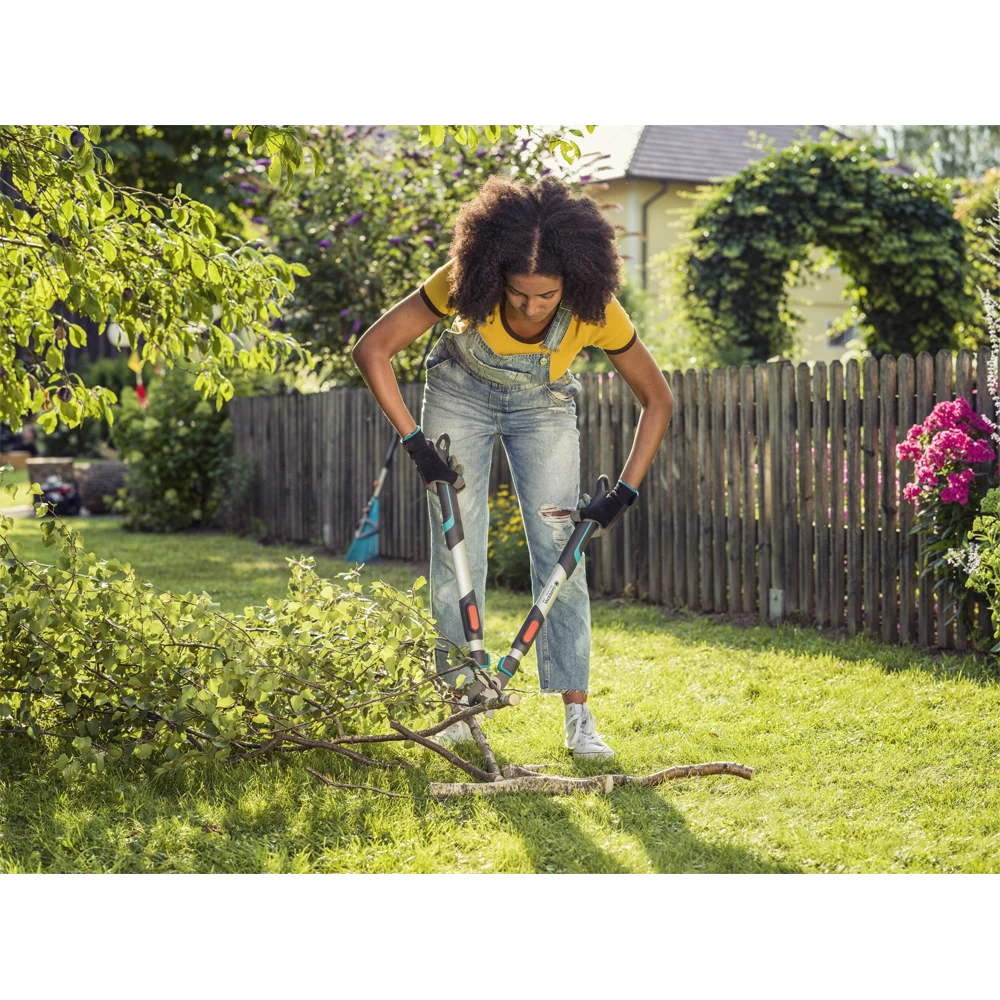 De GARDENA takkenschaar TeleCut 650-900 B is een bypass snoeischaar voor het snoeien van vers hout. Vanwege het lage gewicht en de uitstekende werking van de armen, heeft u weinig kracht nodig om te snoeien. De in lengte verstelbare hefboomarmen maken ook het nauwkeurig snoeien van hogere takken mogelijk. Daarnaast beschermen stopbuffers van speciaal kunststof uw gewrichten. Precisiegeslepen messen met antikleeflaag garanderen een nauwkeurige snede die vriendelijk is voor planten.