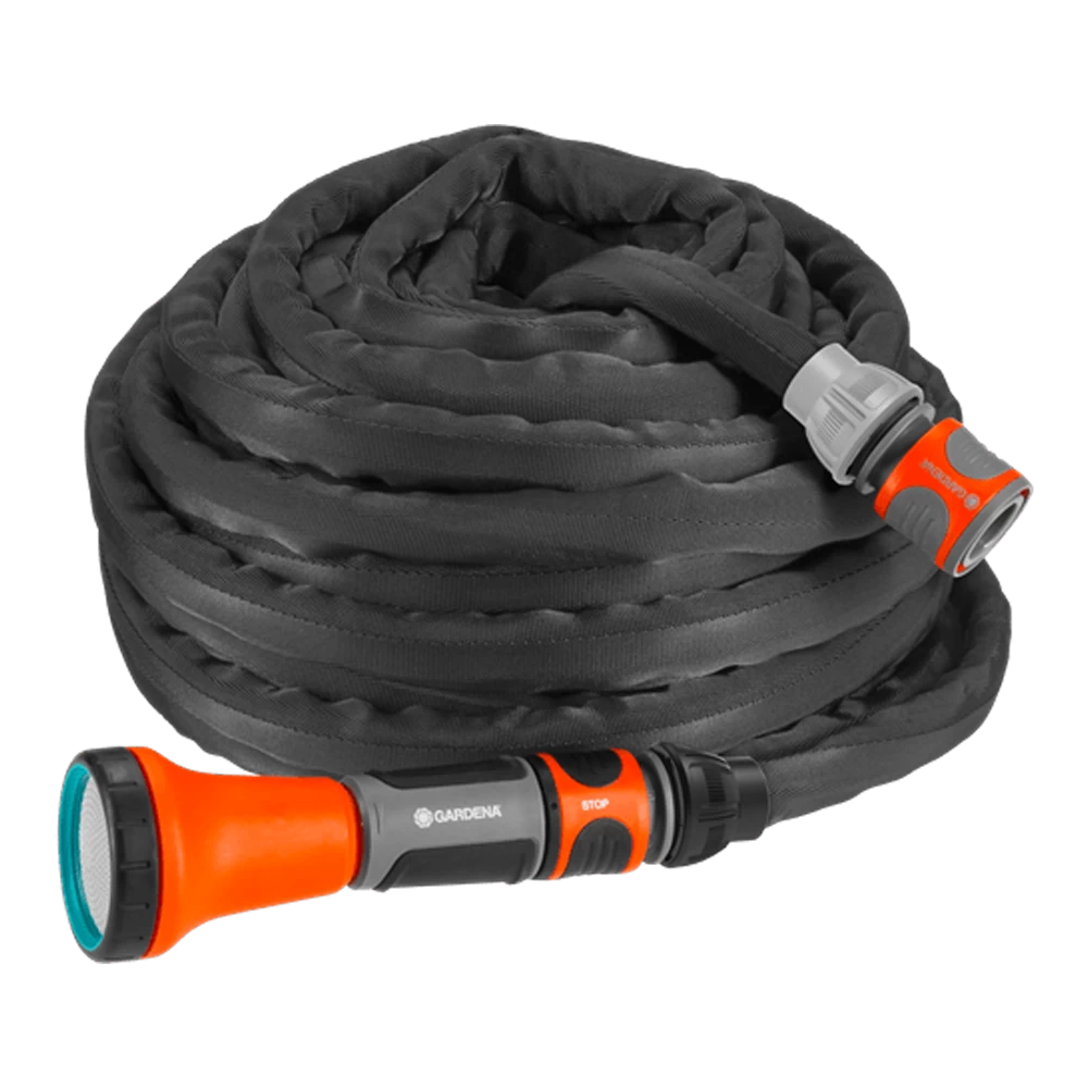 De GARDENA textielslang Liano™, gemaakt van zeer duurzaam textiel, is bijzonder handig in gebruik en uitzonderlijk wendbaar. De slang is bestand tegen maximale belasting in de tuin en is drukbestendig tot 35 bar. Het lage gewicht maakt opslag bijzonder gemakkelijk. Ook geschikt voor slangenwagens en -haspels. De textielslang Liano Set 15 m wordt compleet geleverd met een schroefkraanaansluiting die geschikt is voor drie verschillende kraanafmetingen, slangaansluitstuk, waterstop en broes.
