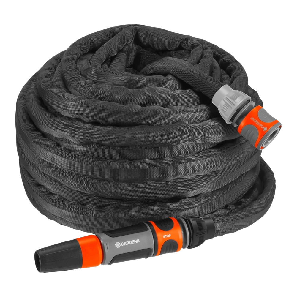 De GARDENA textielslang Liano™, gemaakt van zeer duurzaam textiel, is bijzonder handig in gebruik en uitzonderlijk wendbaar. De slang is bestand tegen maximale belasting in de tuin en is drukbestendig tot 35 bar. Het lage gewicht maakt opslag bijzonder gemakkelijk. Ook geschikt voor slangenwagens en -haspels. De textielslang Liano Set 20 m wordt compleet geleverd met een schroefkraanaansluiting die geschikt is voor drie verschillende kraanafmetingen, slangaansluitstuk, waterstop en reinigingssproeier.
