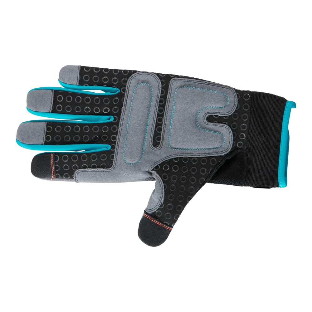 GARDENA heeft de juiste beschermende kleding voor veeleisende werkzaamheden met tuingereedschappen met de handschoen voor gereedschap en hout in maat L. De handpalm van de handschoen heeft een siliconencoating, waardoor gereedschap en apparatuur veilig en comfortabel in de hand kunnen liggen zonder kans op wegglijden. De gewatteerde handpalm maakt het gemakkelijker om gereedschappen vast te pakken. Dit vermindert de schokken bij het hakken van hout en het uitvoeren van andere zware taken aanzienlijk. Het is net zo belangrijk dat een werkhandschoen goed past. De handschoen voor gereedschap en hout voor grote handen voldoet aan deze eis dankzij de praktische sluiting op de polsband, samen met flexibel materiaal op de boord en de achterkant van de hand, wat zorgt voor een perfecte pasvorm. Bovendien is de handschoen ademend dankzij het gebruikte mesh materiaal en de microfleece met zweetabsorptie bij de bal van de duim. Als u uw smartphone tijdens een pauze wilt gebruiken, hoeft u de handschoen niet uit te trekken. De toppen van uw duim en wijsvinger zijn geschikt voor het bedienen van een smart apparaat dankzij de Mobile Touch-functie. Alle textielsoorten in de perfect passende handschoenen die voor smartphonegebruik geschikt zijn, zijn vrij van schadelijke stoffen, zoals wordt bevestigd door de Oeko-Tex® Standard 100-certificering.